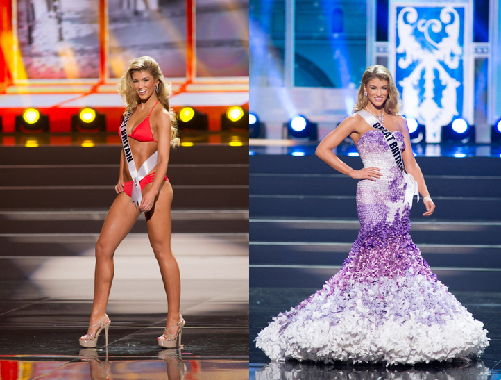 Gran Bretaña, una de las máximas favoritas, estuvo imponente tanto en la presentacion como en el desfile de baño, sin embargo protagonizó uno de los momentos más angustiosos de la noche al presentar un traje de gala difícil de llevar en el que parecía que estaba atrapada. Finalmente, tuvo que cogerse los bajos de la falta para poder bajar las escaleras sin caerse, lo que le restó elegancia a su presentación. Esperemos que este incidente no aniquile sus opciones a ser top. Lo mismo le ocurrió a Francia, pero en su casa en el desfile de baño, donde lució una de las peores pasarelas de la noche. A pesar de ser bellísima y tener un cuerpo excelente, su forma de caminar no fue la más profesional y eso restó puntos a su presentación. No obstante, y como en el caso de la inglesa, esta chica es demasiado bella como para ser ignorada y espero que tenga otra oportunidad el sábado para sagar toda la garra y fuerza que seguro posee.