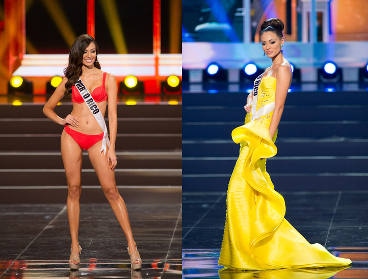 Puerto Rico sigue fuerte en su camino a la corona gracias a una pasarela elegante, sensual y casi felina. En traje de baño estuvo impecable, al igual que en el desfile en traje de noche, donde arriesgó con un vestido en amarillo canario con el que deslumbró sobre la pasarela. Desde luego, Monic estará muy arriba en la clasificación final. Bolivia es otra que ha subido como la espuma, gracias a una excelente pasarela y una belleza exótica y sofisticada que recuerda al de la ex-miss Dayana Mendoza, ganadora de la edición del 2008. Alexia puede presumir, además, de haber lucido uno de los mejores trajes de noche de la competencia, gracias a lo cuál ha pasado a ocupar las primeras posiciones de muchos tops.