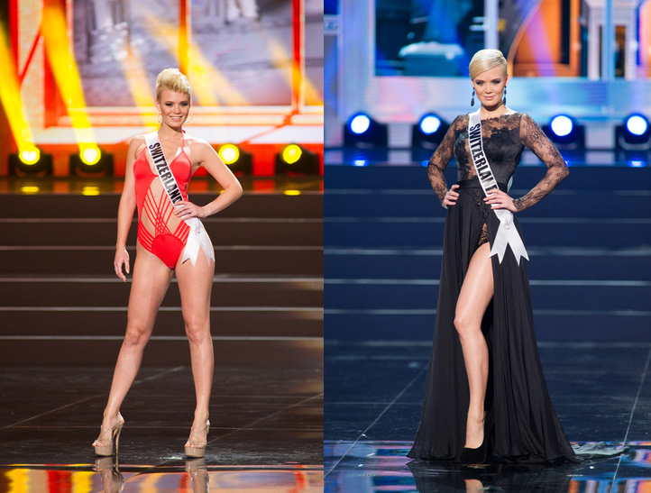 Las chicas del pelito corto, Suiza y República Checa, no supieron sacar todo el provecho a su look moderno y diferente. Aunque realizaron presentaciones correctas y no comentieron fallos demasiado evidente, la verdad es que su estilismo no fue el más adecuado, sobre todo en el caso de la checa, quién lució un tanto aburrida y apagada en ambos desfiles. Ellas son dos de mis favoritas, pero confío en que el sábado, en caso de pasar al top 15, luzcan un arreglo más «model» y acorde con su personalidad fresca y natural.