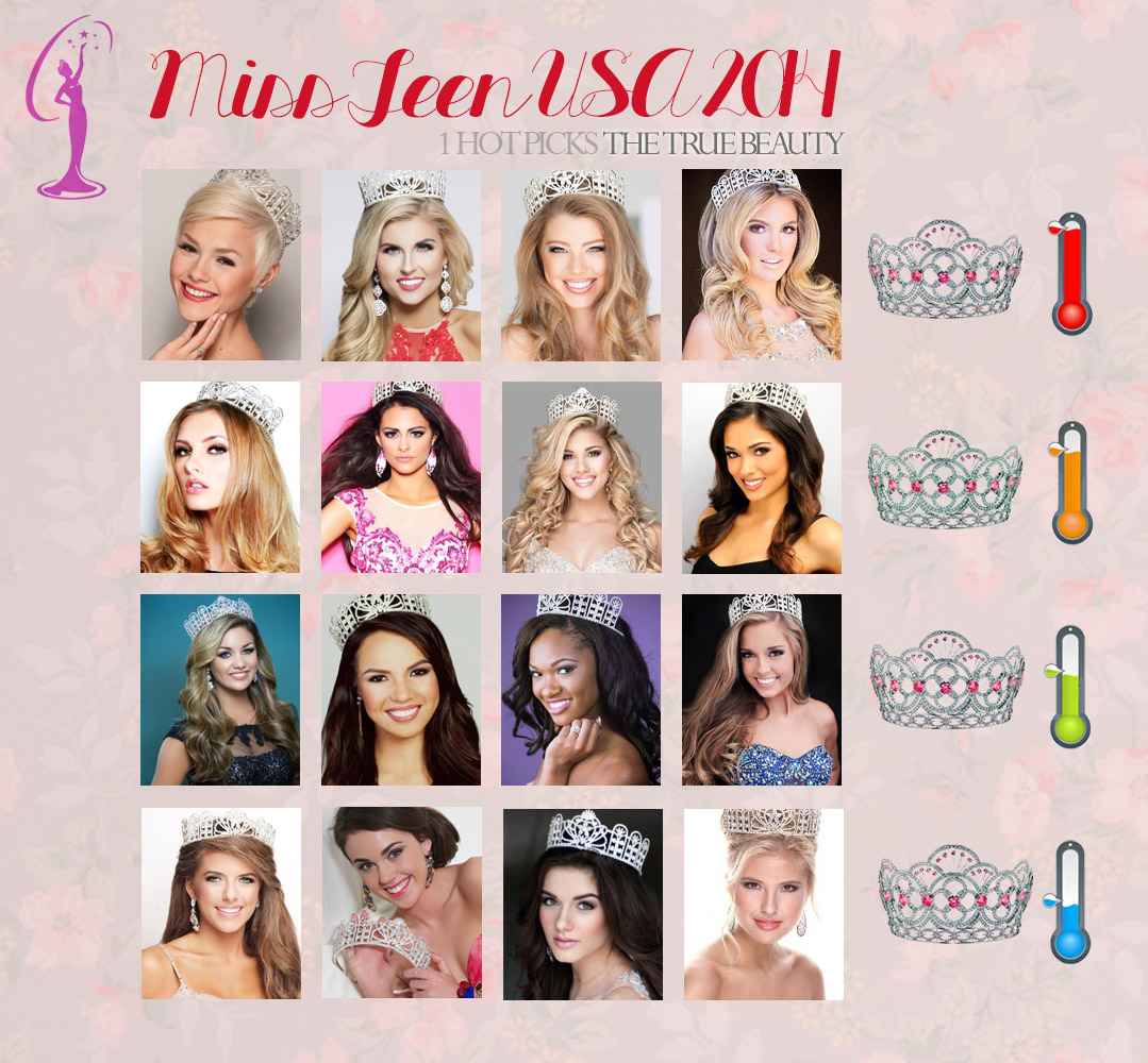 Uno de los certámenes de belleza favoritos en The True Beauty es el ya tradicional Miss Teen USA, el concurso adolescente más importante en los Estados Unidos. Hermano pequeño del Miss USA, el Teen se celebra ininterrumpidamente desde el 1983, cuando la neoyorquina Ruth Zakarian obtuvo la corona por primera vez (curiosamente, Nueva York también fue el primer estado en ganar la corona de Miss USA). Durante muchos años, tan sólo Oregon fue el estadoque ganó más de una vez, acumulando un total de 3 victorias, en 1988,1990 y 2003, hasta que en el 2009 Stormi Henley ganó el segundo título para Tennessee, seguida de Danielle Doty en 2011 y Cassidy Wolf en 2013, quienes les otorgaron un segundo triunfo a sus estados, Texas y California, respectivamente. El resto, han sido todas nuevas ganadoras, incluso de estados que no cuentan aún con una corona del Miss USA, como Delaware, Colorado o Montana.