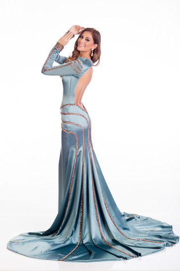 Aunque es cierto que el diseño escogido por la española no es precisamente de alta costura, lo cierto es que consigue el efecto que debería cumplir todo vestido de noche: resaltar la belleza de la candidta. Ademas, la pose de Desire y su espectacular estilismo hacen de esta una de las fotos más artísticas y elegantes de entre todas las candidatas. La belleza de nuestra candidata es innegable y el color del vestido en azul petróleo decordado con líneas de pedrería doradas le sientan a la perfección. Una año más, España está entre las favoritas a la corona.