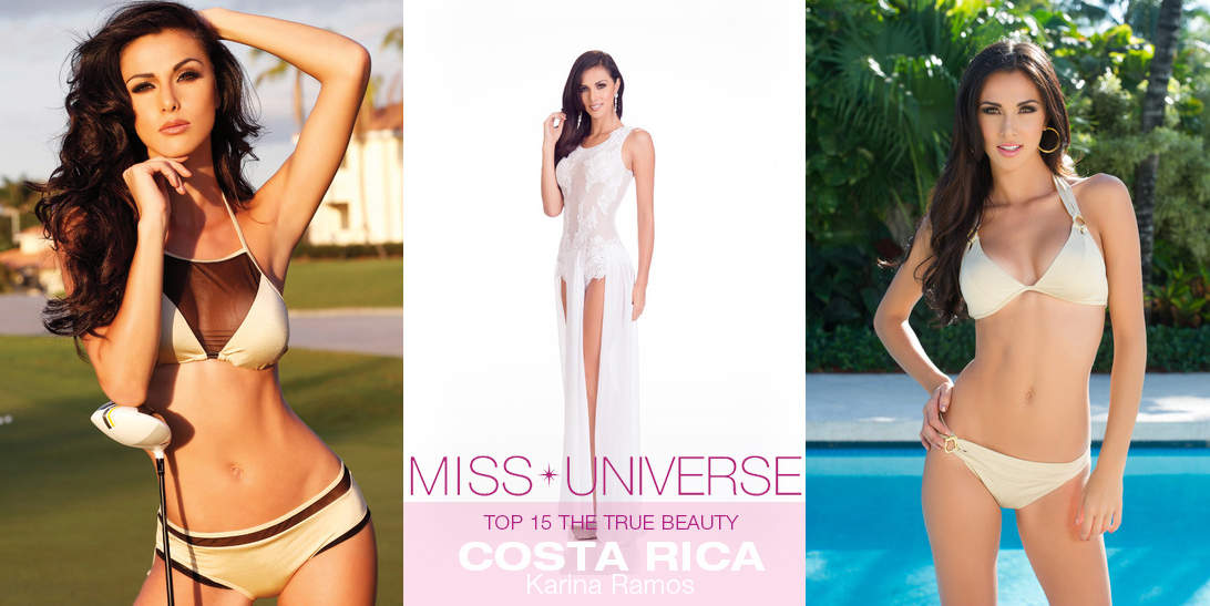 La costarricense Karina Ramos tiene uno de los mejores rostros de este año sin lugar a dudas, y es una de las candidatas más finas y elegantes por latinoamérica. Puede superar el Top 15 conseguido por su predecesora en el 2013 ya que no me la imagino quedándose pegada en el desfile de traje de baño, gracias a su impresionante forma física. Aunque muchos han criticado su elección en el traje de noche de la preliminar, en tonos oscuros, creo que era un diseño que se ajustaba a su belleza, sin distraer de lo importante, que es su rostro. No obstante, de pasar al Top 15 intuyo que lo cambiará por otro más llamativo.
