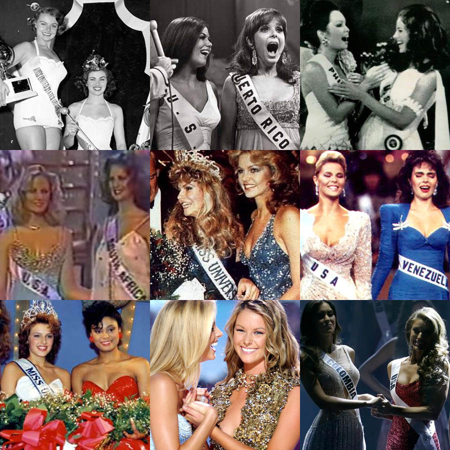 Aprovechando este nuevo puesto de primera finalista o «1st runner up», me gustaría repasar las nueve veces en las que la candidata USA casi consigue el triunfo. Como curiosidad, comentar que en ninguna de estas ocasiones se repite ganadora de un mismo país, incluso podemos encontrar una gran variedad de continentes: Europa, America, Asia, África e incluso Oceanía en dos ocasiones. A continuación, el «salón de la fama» de las primeras finalistas estadounidenses: