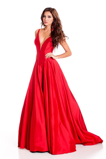 Arkansas es una de las potenciales Dark Horses de esta edición, con su 1,80 y su impontente porte. En la foto en traje de noche parece un miembro de la realeza, no sólo por el elegante vestido rojo que se ciñe perfectamente a su silueta, sino también por su pose regia. Un look de miss clásico y elegante.