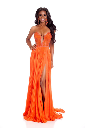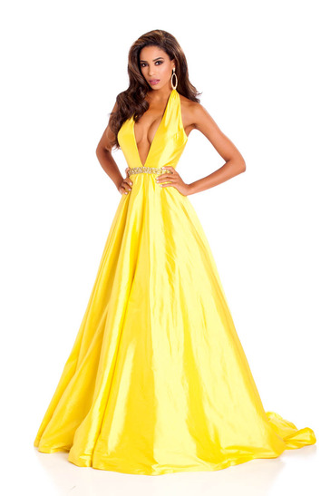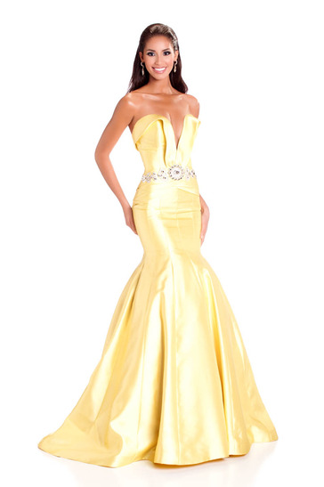 Nevada, como era de esperar, viene con todo a la concentración, muy bien asesorada por la ex-Miss USA Shanna Moakler, creadora de reinas como, entre otras Alyssa Campanella y Nia Sanchez. Brittany conoce muy bien sus puntos fuertes, y uno de ellos es su espectacular tono de piel que resalta con este llamativo color amarillo (el color de la alegría, como diría Jeannie Mai) y que seguro será todo un espectaculo en movimiento.