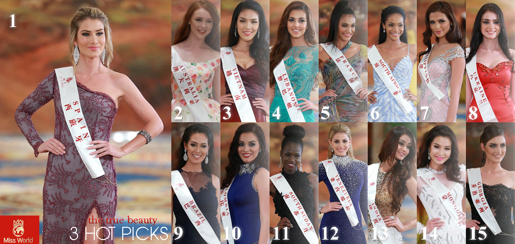 Después de los nervios y la emoción de la preliminar del Miss Universo, pasamos a algo más tranquilo y relajado, el Miss Mundo 2015, que llega a su recta final; y es que quedan dos días escasos para que tenga lugar la gala de elección de la sucesora de Rolene Strauss, en un Miss Mundo que está resultando una de las ediciones más abiertas e impredecidibles de los últimos años. Después de las victorias anunciadas y aplastantes de Megan Young y Rolene, podemos decir que este año no hay una ganadora clara y todo puede pasar. Los Fast Tracks están resultando también muy poco concluyentes en cuanto a resultados, con lo que los puntos están muy repartidos y será la entrevista final la que decida qué misses pasarán a la gran final del sábado. Nuestra Mireia Lalaguna está destacando cada vez más y, a día de hoy, podemos decir que tiene muchas opciones de corona, ya que ha sido muy consistente durante toda la concentración, yendo de menos a más con cada día que pasa. En el desfile de diseñadores, y a pesar de los trapos que le tocó lucir sobre la pasarela, destacó gracias a su belleza rotunda y elegante, saliendo airosa de la prueba con sobresaliente. Otras candidatas que están subiendo mucho en la recta final del certamen son las misses de Australia, Sudáfrica, Filipina, Mongolia y Sudán del Sur, mientras que Vietnam, Brasil y Francia siguen muy fuertes en las apuestas.
