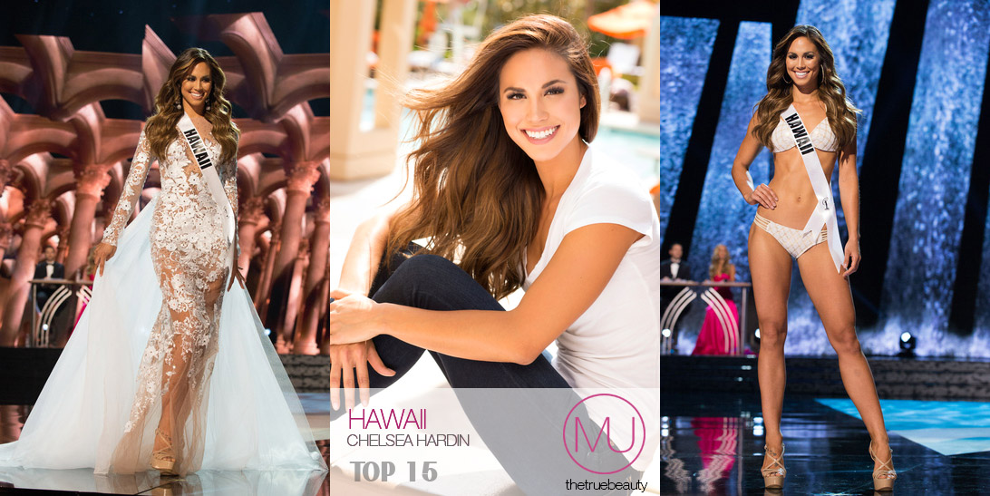 La belleza exótica de esta edición viene de las islas Hawaii representadas por este mujerón que, curiosamente, no tiene experiencia previa en los certámenes de belleza. Chelsea Hardin es alta, tiene un cuerpazo y un rostro de princesa Pocahontas muy atractivo. Además, es una de las veteranas por edad, punto a su favor después de la excelente representación de Olivia Jordan, que ganó con 26 años demostrando que la madurez es importante para portar bien la corona. En la preliminar ha optado por un vestido de encaje blanco con transparencias que contrastaba perfectamente con su tono de piel, y ha lucido cuerpo de impacto en el desfile en traje de baño. Sin duda, Chelsea será una de las favoritas en la final.