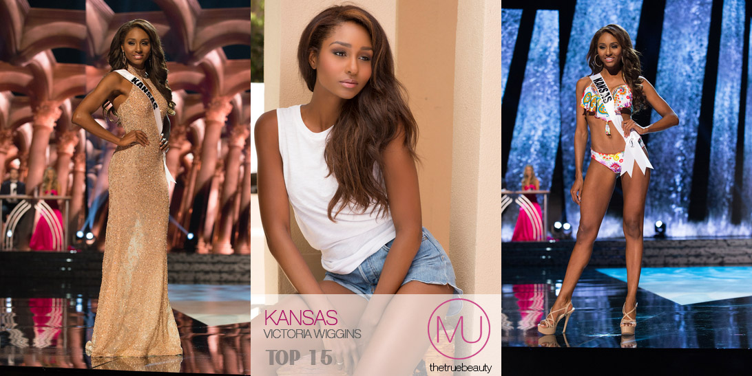 Una de mis favoritas sentimentales de este año es Victoria Wiggins, sobre todo porque he seguido su trayectoria como candidata del Miss Kansas USA, concurso en el que fue top 3 en la dos últimas ediciones, tras pasar por el Miss de Missouri y el Teen de Oklahoma; una carrera como reina de belleza de ocho años que culimanará mañana cuando por fin pueda pisar el tan ansiado escenario del Miss USA. Victoria cuenta con el factor de miss simpática y cercana, además de un look exótico y diferente que puede jugar a su favor. En la preliminar ha estado correcta aunque sin destacar demasiado. No lo tiene fácil pero quién sabe, puede dar la sorpresa y colarse en el Top 15.