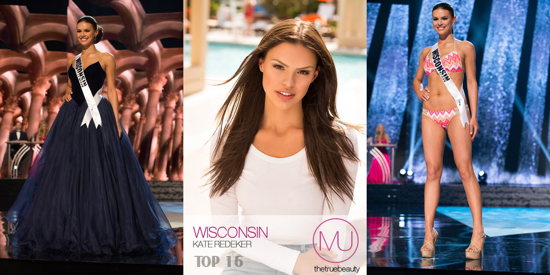 La máxima «hypeada» de este año es Kate Redeker, representante de Wisconsin y que ya participó por su estado en el Miss Teen USA 2013 siendo semifinalista. Está volviendo locos a los seguidores en USA gracias a su rostro casi perfecto y a su extrema fotogenia, ya que no sale mal en ninguna foto. Además, tiene un look natural e irradia belleza sin esfuerzo, cualidades que poseían otras reinas como Olivia Culpo, a la que se asemeja en algunos ángulos. En la preliminar lució un vaporoso vestido azul, versión de un Sherri Hill que usó la Jordan para el Miss Universo, que combinó con un recogido que dejaba totalmente al descubierto su espectacular rostro. Será una de las rivales a batir si consigue sacar un poco más de chispa y de ese factor «X» que tanto le gusta a los jurados.