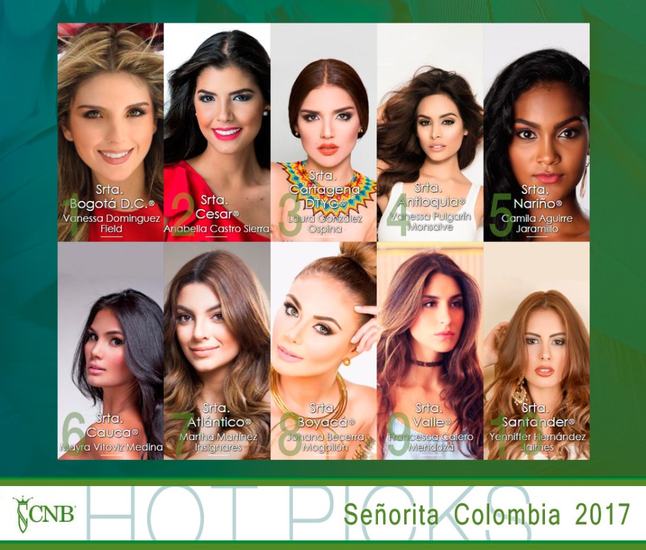 Al igual que ha ocurrido en México, Colombia ha hecho una pausa de un año para ajustar su concurso nacional al mismo año en el que se celebra el Miss Universo, por lo que su representante para el 2017 no ha sido escogida a finales del año pasado, como era tradicional, sino que la final tendrá lugar este 20 de marzo desde la ciudad de Cartagena de Indias. La carismática Andrea Tovar, 2ª Finalista en el pasado Miss Universo, entregará su título a una de las 23 representantes de las distintas regiones del país, que intentará seguir con la espectacular racha del país que lleva tres años consecutivos sin salir del Top 3 en el concurso universal.