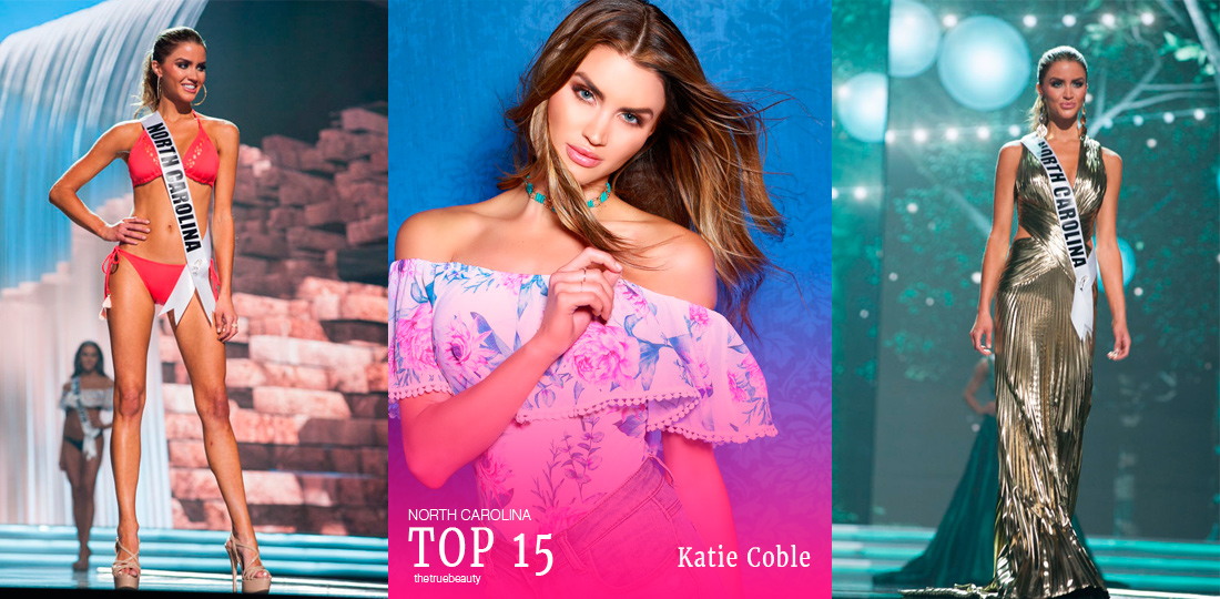 Si hablamos de candidatas esperadas por los missólogos, la que se lleva la palma este año es Katie Coble, que fue 2ª Finalista en el Miss Teen USA 2007, justo después de la posteriormente Miss USA Alyssa Campanella, y que consigue pasar a la división “miss” en su quinto intento, con participaciones en el estado de Alabama incluidas. Por fin, y diez años después de su experiencia Teen, Katie contraataca en su mejor momento, aunque ya en el límite de edad, y se posiciona como una de las claras favoritas a la corona. En la preliminar ha estado deslumbrate, sirviendo rostrazo y con un vestido dorado que la convierte en la más glamourosa de la noche. Se puede decir que la espera ha merecido la pena.