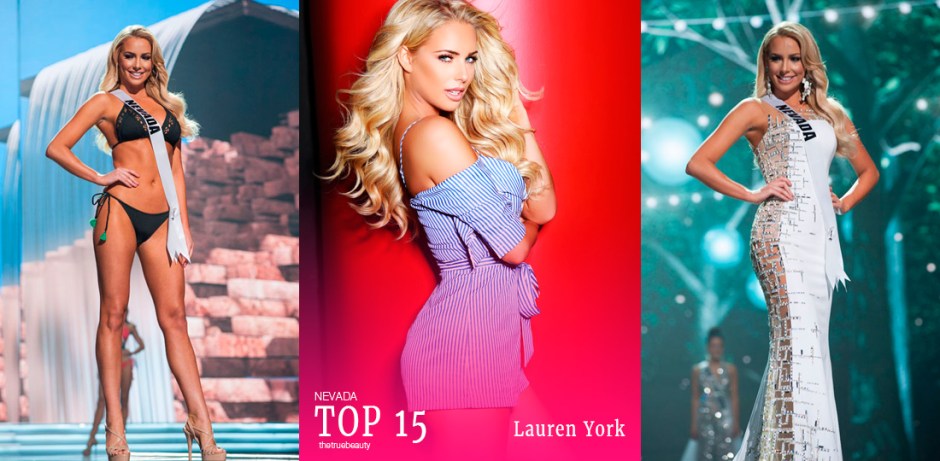 La sexy y carismática Lauren York se presenta de la mano de Shoanna Moakler, ex reina del 95, y ahora delegada del Miss Nevada y autora de la primera victoria para este estado con Nia Sanchez. Al igual que Nia, Lauren lo intentó en California en la división Teen (Top 10 2012, 4th RU 2014) y Miss ( Top 20 2015, Top 20 2016), antes de ganar en un estado menos competitivo y mejor dirigido (recordemos que, irónicamente, Shoanna también fue delegada del Miss California). La rubia de Nevada es una de las candidatas más completas y con más seguidores de esta edición, y si los jurados buscan una Miss USA sexy y chispeante como contrapunto de Desahuna, esta mujer es perfecta para el puesto.