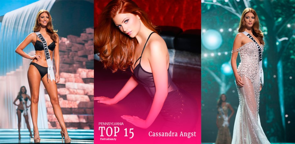 ¡Posion Ivy! Ese fue el apodo que la presentadora de la edición 2010, Giuliana Racic, le dio a Alyssa Campanella por su pelo de fuego antes de llevarse la corona; y es el mismo sobrenombre que le podemos dar a la espectacular Cassandra Angst, toda una barbie pelirroja. Cassandra es una de las candidatas más anticipadas y esperadas por los missólogos americanos ya que, a pesar de su juventud, ha conseguido su corona al cuarto intento, después de ser 4th Runner up en 2014 y 2015, y quedar segunda el año pasado. En la preliminar ha destacado por su elegancia y clase, a pesar de un puntito de frialdad que deberá corregir si quiere meterse al jurado en la final, a la que esperemos que esté presente.