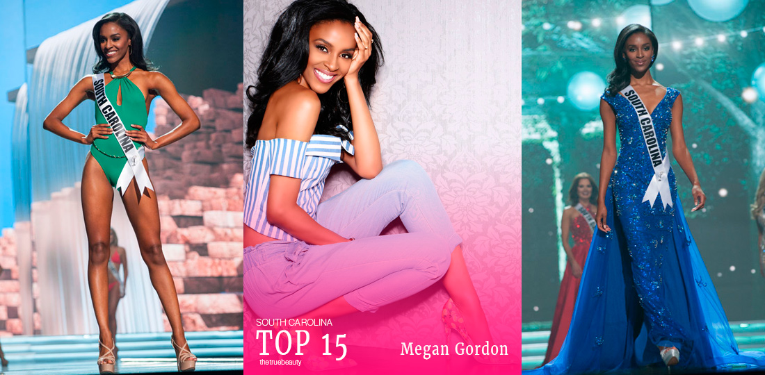 Este año las Carolinas vienen con todo, ya que además de la ya mencionada Katie Coble, la otra representante sureña por excelencia, Megan Gordon, se perfila como una de las candidatas más fuertes. Con un físico imponente y una gran presencia tanto en fotografía como pasarela, Megan se disputa el título de mejor afroamericana con California, aunque Megan, que ya estuvo a punto de ganar su estatal el año pasado al quedar en segundo lugar, cuenta con experiencia en el circuito de Miss America, donde ganó los títulos de Miss Collegiate America 2014 y Miss Southeast. Y ya sabemos que la nueva dirección del Miss USA se acerca cada vez más a la de su certamen rival. Este año RPM Productions, la delegación en las dos Carolinas y Louisiana, tiene muchas opciones de conseguir triunfo.