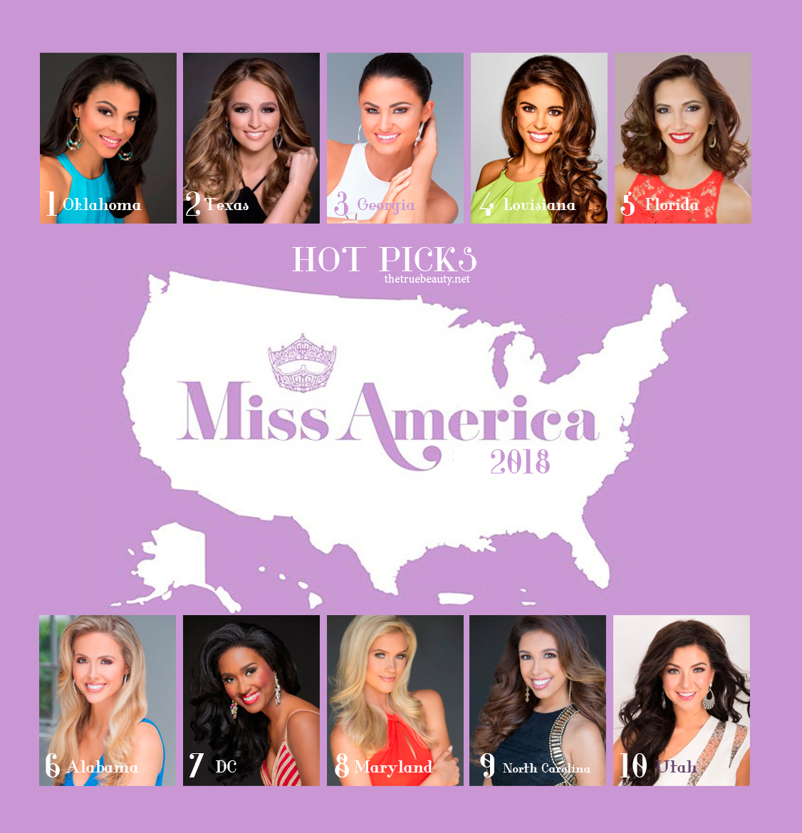 Este año las apuestas están muy abiertas, aunque han destacado las representantes de Louisiana y Texas (grandes favoritas), seguidas de North Carolina, Utah, Alabama, Oklahoma, Georgia, Florida y DC. Aunque como siempre, las sorpresas están aseguradas en los resultados.