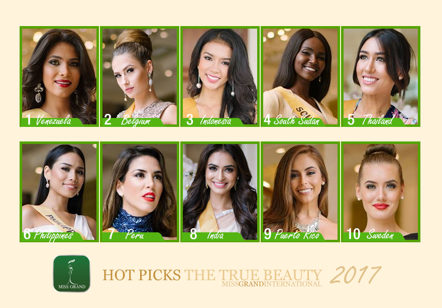 Este año, y como viene siendo habitual en este certamen, las grandes favoritas provienen de Asia (Tailandia, Vietnam, Indonesia, India, Filipinas) y Latinoamérica (Perú, Ecuador, Venezuela, Puerto Rico, Argentina); aunque hay candidatas muy interesantes venidas del continente africano, como Sudán del Sur y Tanzania, además de, como no, las europeas, que ya reclaman la primera corona para el viejo continente, con Bélgica, Ucrania, Suecia, Rusia y Eslovaquia como principales favoritas. Pero, como siempre, la decisión final está en manos del jurado y de la organización, que decidirán el nombre de la nueva reina Grand International. Aquí está mi lista de favoritas encabezada por la exótica y llamativa Tulia Alemán, que fue Miss Falcón en el Miss Venezuela 2016: