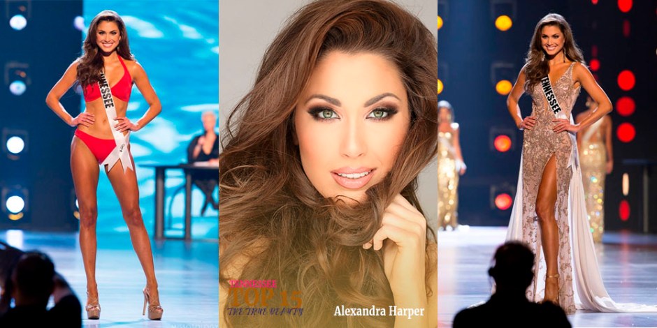 Alexandra Harper, que ganó su estatal al segundo intento, viene de familia de reinas, ya que es hija de la Miss Tennessee USA 1981 Sharon Kay Steakly. Esta bella candidata es alta, con porte y un rostro impacante, cualidades que la convierten en una de las candidatas más llamativas, además de portar una banda de peso en el concurso.