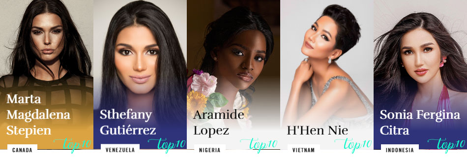 Este año, por primera vez, el jurado estará compuesto por solo mujeres: Liliana Gil Valletta, empresaria de origen colombiano; Janaye Ingram, personalidad de los medios y activista estadounidense; Miss New Jersey USA 2004; Iman Oubou, empresaria fundadora de SWAAY MEDIA, activista marroquí-americana; Monique Lhuillier, diseñadora de modas filipino-americana; Michelle McLean-Bailey, actriz, escritora y modelo namibia: Miss Universo 1992; Porntip «Bui» Simon, filantropa y personalidad tailandesa, Miss Universo 1988; y Richelle Singson-Michael, empresaria filipina, organizadora del Miss Universo 2016. Como veréis, dos miembros de este «comité de selección» son de origen filipino, a las que se suma Michelle McLean, que ya ha profesado su admirado por Catriona, por lo que la filipina tiene todo de cara para ser coronada esta noche.