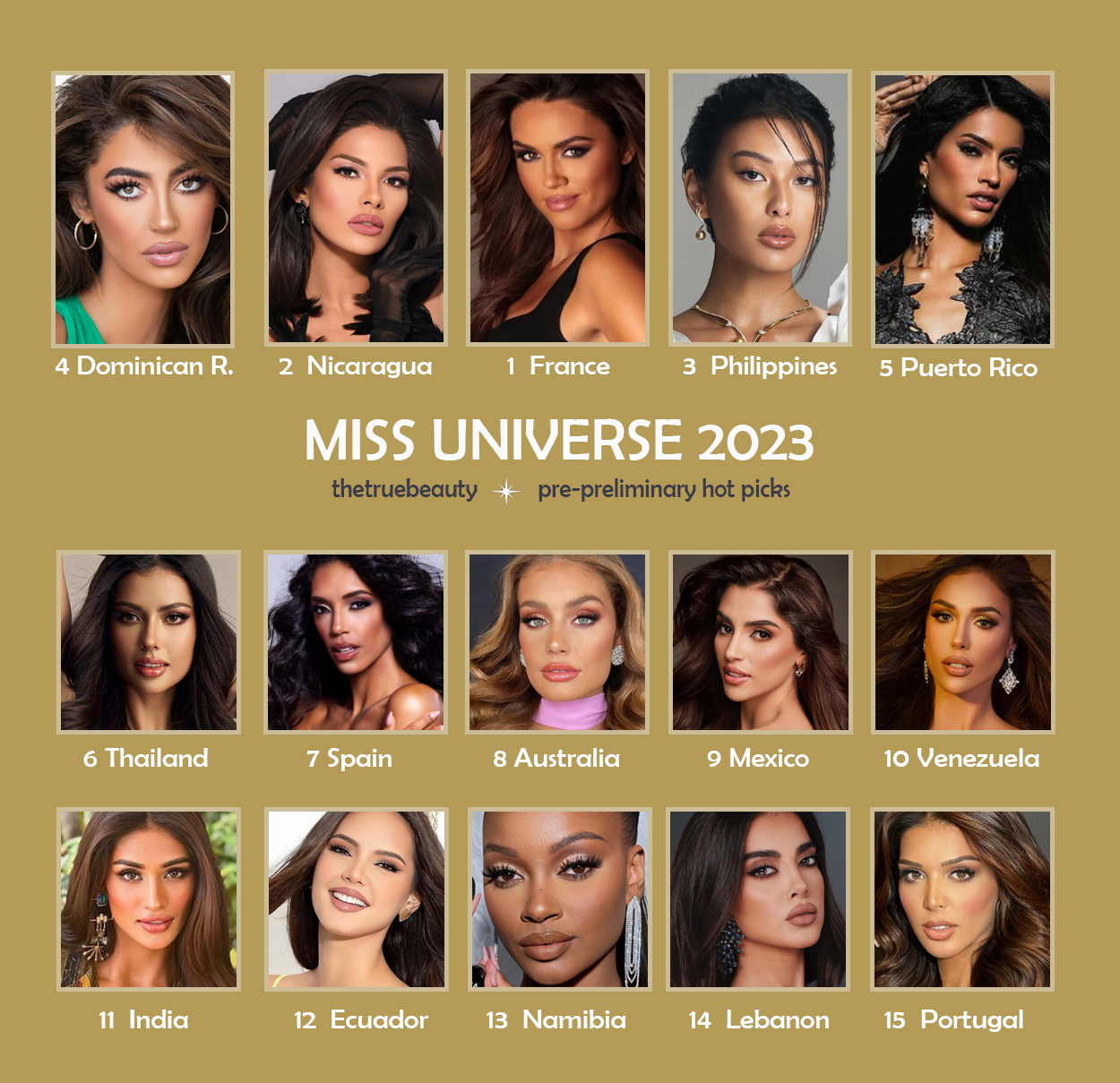 Os dejo con mi ‘Hot picks’ antes de la preliminar, encabezado por la espectacular Diane Leyre, Miss Francia. Diane ha destacado enormemente desde su llegada a El Salvador, demostrando sus dos años de experiencia como reina de su país. También me recuerda a su paisana Iris Mittenaere, Miss Universo 2016.